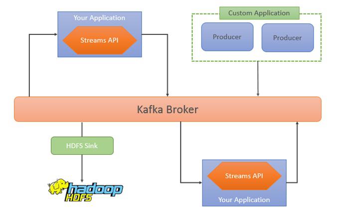 Juntos, Kafka Client APIs, Conectores Kafka e Kafka Broker fornecem infraestrutura de backbone confiável e escalável, que entregam fluxos de dados entre aplicações. Acima de tudo, você pode usar o sistema que preferir para desenvolver uma aplicação de fluxo em tempo real.